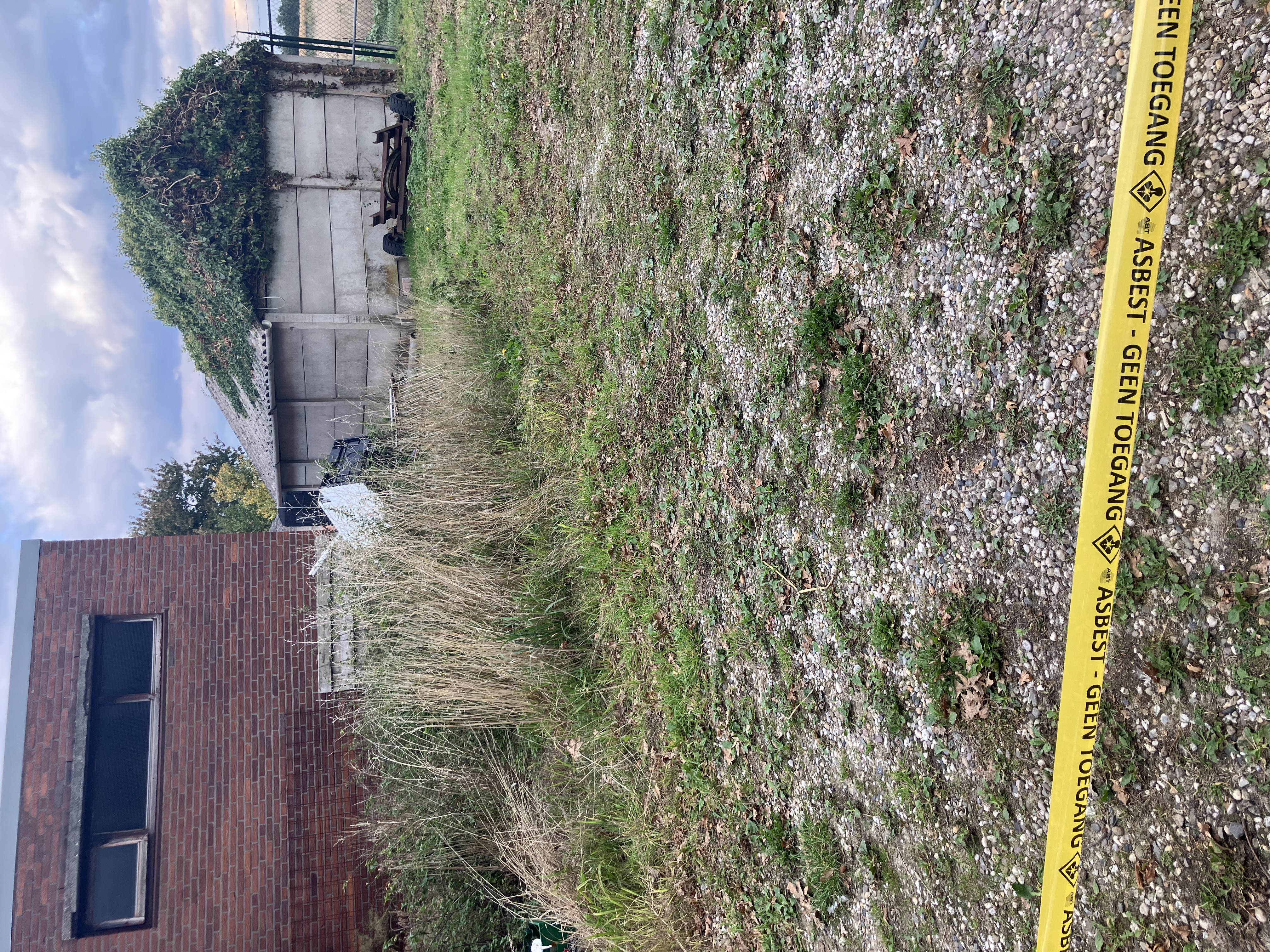 maandag 22 september 2025 - Vandaag is open en verweerde asbest aangetroffen op een verlaten fabrieksterrein en weg van overpad aan de Kerkstraat in de bebouwde kom van Koningsbosch. In hoog gras liggen asbest scherven, vermoedelijk afkomstig van een rafelend en afbrokkelend dak van golfplaten. Ook een klimop vreet asbesthoudende golfplaten aan. De wind heeft hier vrij spel, bewoners lopen er langs en auto’s draaien hier naar de openbare weg.